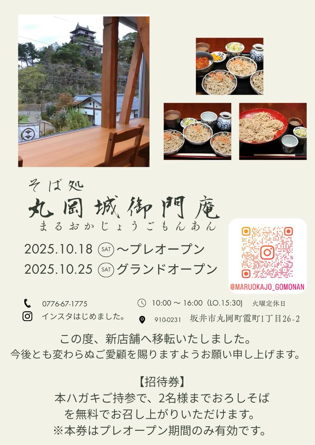 そば処「丸岡城御門庵」 新店舗オープンのお知らせ